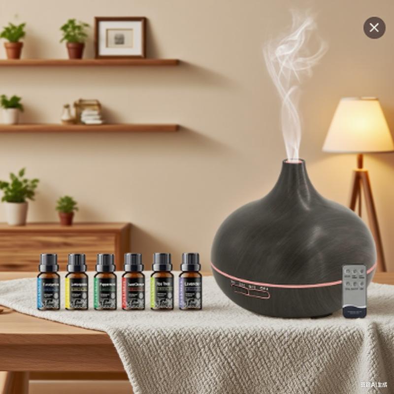 "Relax with a 550ml wood grain diffuser. Quiet, elegant, and long-lasting mist for a spa-like home sanctuary."