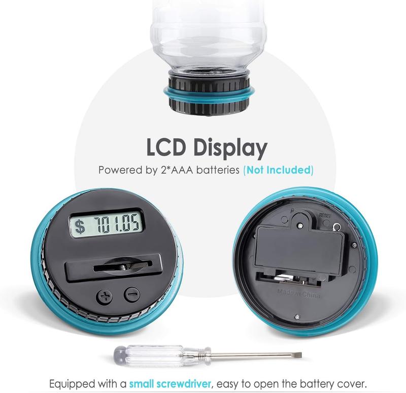 Coin-counting money jar with a legible LCD screen for quick and accurate coin counting.