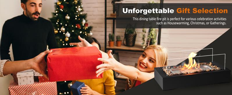 Table Fire Upgraded Safer Gel Fuel Fire Pit, Smores Maker with Cobblestone Decorated for Parties, Gift for Birthday, Mum and Weddings (Gel Was Not Included)